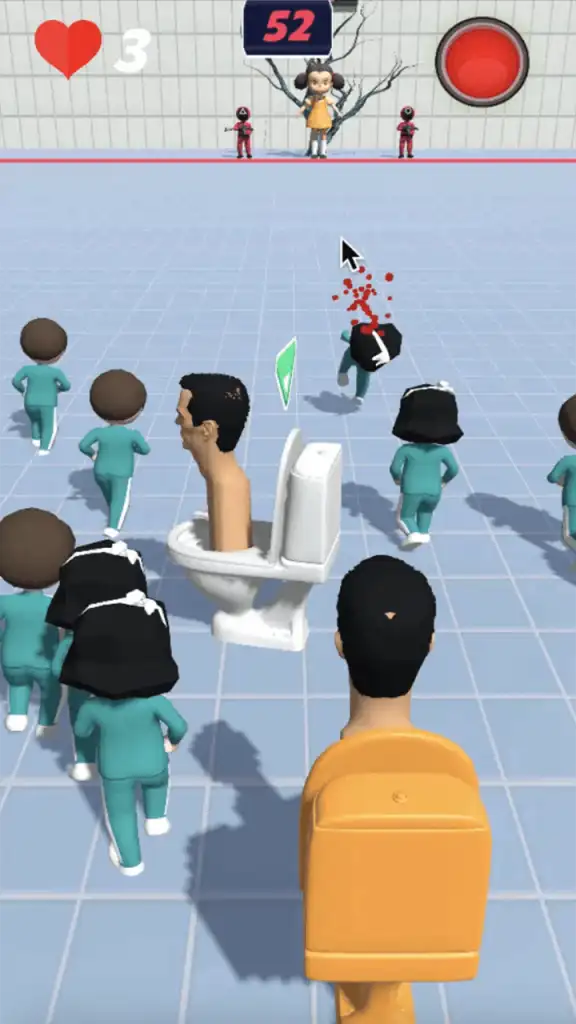 Step into the chaotic world of Skibidi Survival Toilet, an exciting “Red Light, Green Light” challenge inspired by viral Skibidi characters. Competitors race across the toilet yard, trying to reach the finish line before the red light turns on. When the signal turns green, you run… but the moment it turns red, any movement means elimination!