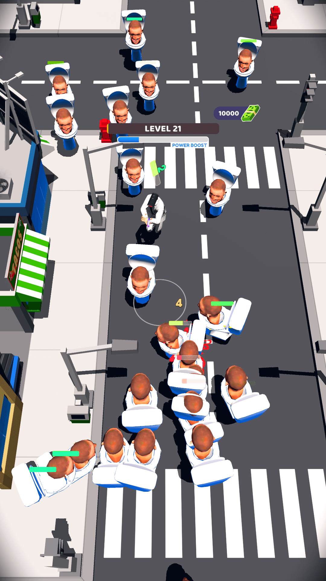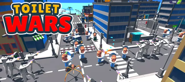 is a fast-paced top-down shooter game where players battle against the bizarre and dangerous toilet army across a large open-city environment. Armed with powerful weapons and supported by recruitable camera soldiers, your mission is to eliminate enemies and dominate the battlefield.