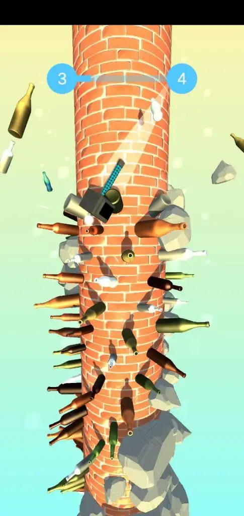 Tap to swing your hammer and break the bottles spinning around the pillar. Each smash feels punchy, rewarding, and satisfying.