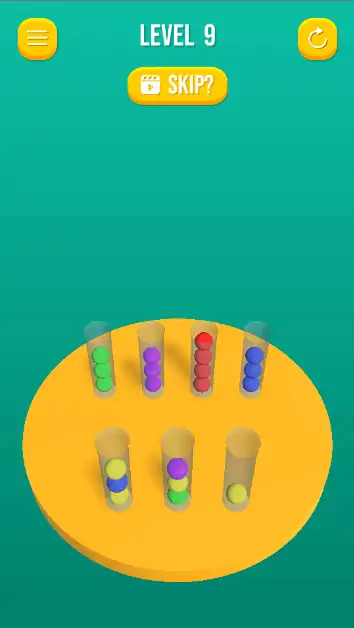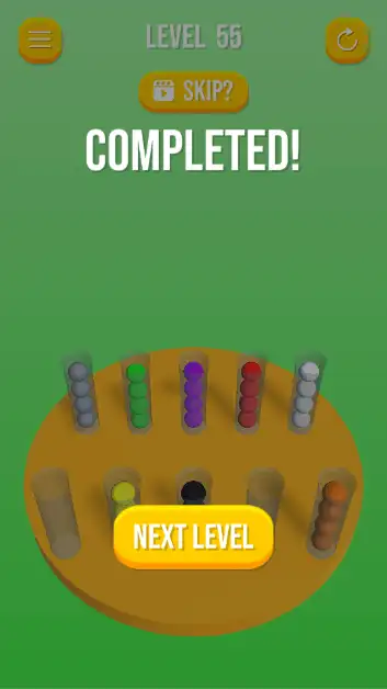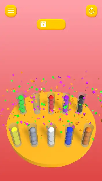 Players sort color balls across tubes until each tube holds balls of a single color. The game starts simple and gradually introduces larger challenges—more tubes, more colors, and more complex initial arrangements.