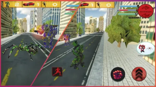 Switch instantly between spider form and police mech robot mode to tackle different enemy strengths. Use spider climbing skills for rooftop battles or transform into a war robot to unleash powerful firepower on the ground. Engage in urban survival missions, rescue civilians, eliminate enemy robot squads, and restore peace to the city.