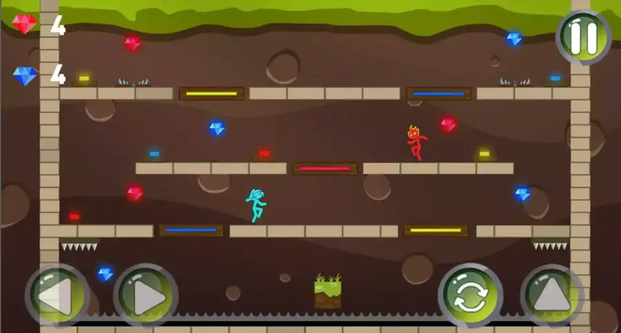 Stickman Go brings a thrilling cooperative-style puzzle experience where players control two elemental heroes—Redboy (Fire Boy) and Bluegirl (Water Girl)—at the same time. Trapped inside an ancient temple maze, both characters must navigate through dangerous chambers filled with elemental hazards, tricky switches, and collectible gems.