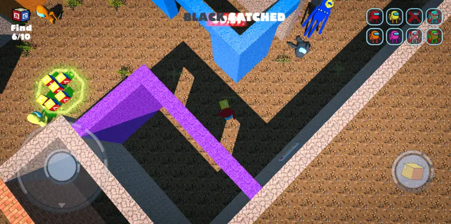 Aapko jitne blocks possible utne time ke andar collect karne hain — lekin dhyaan rahe, rainbow imposter aapke peeche hai. Agar woh aapko pakad le ya time khatam ho jaye, level over!