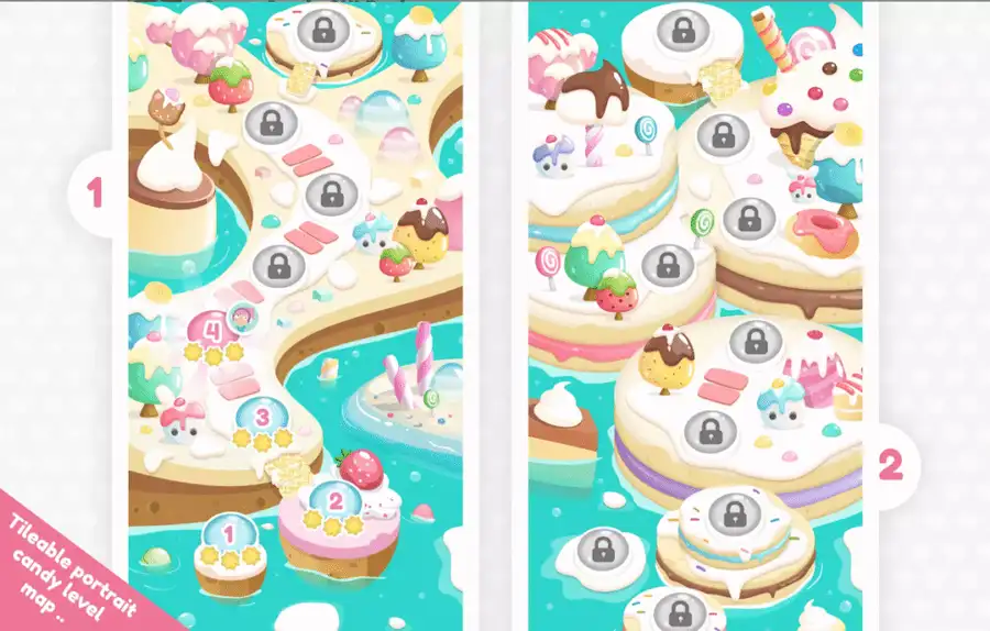 Sweet Candy GUI Pack is a mobile-friendly game UI kit with 500+ candy-style elements, layered PSD files, and flexible layouts—perfect for Match-3 and casual games.