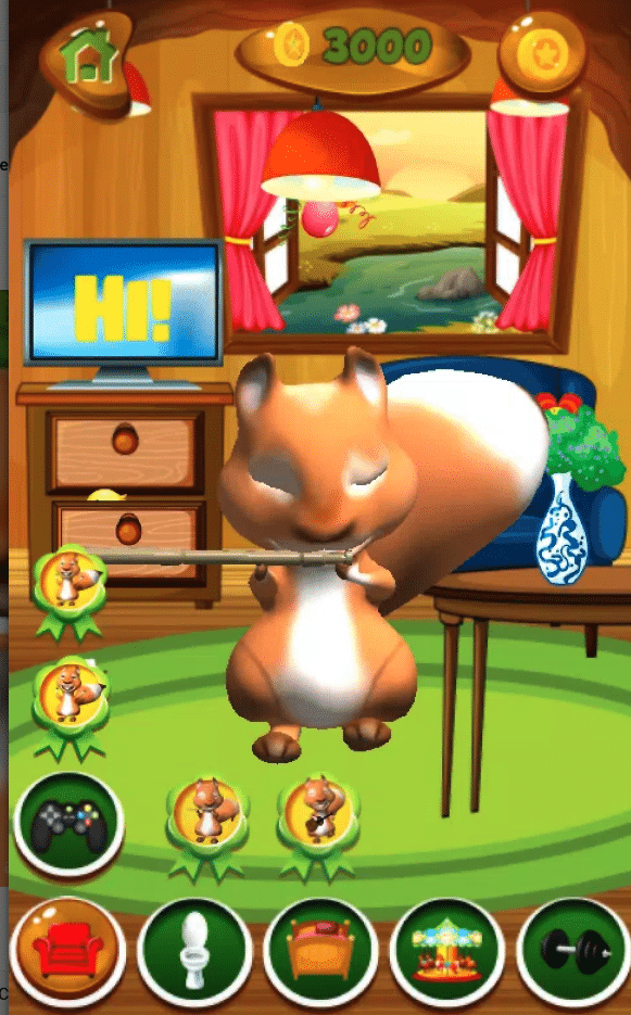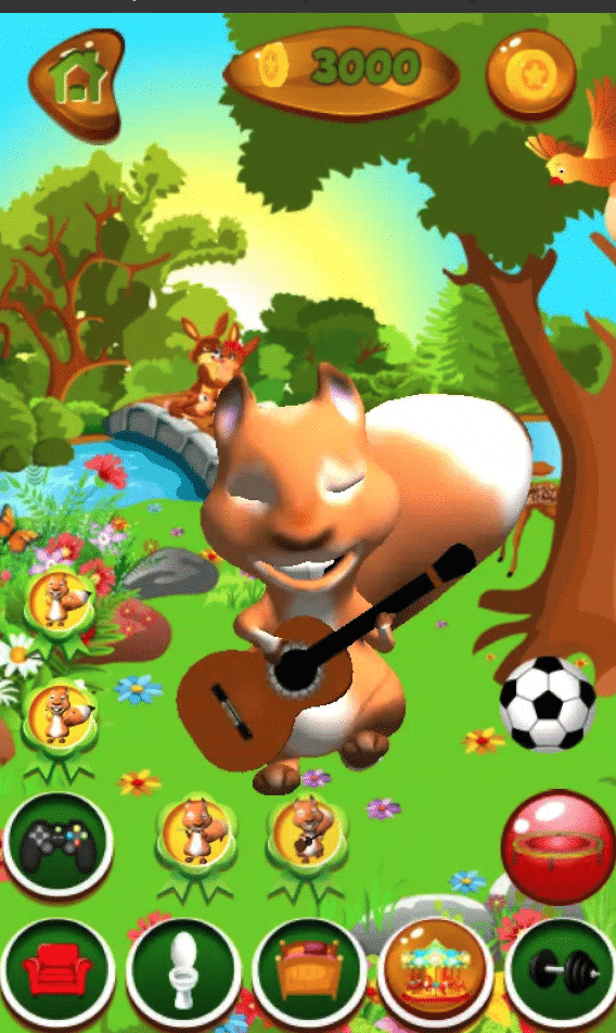 At the heart of the experience is the talking pet interaction. Players can talk to the squirrel using the microphone and hear him repeat every word in a funny voice. This feature creates endless laughter and makes the pet feel alive and responsive, encouraging repeated play sessions and emotional connection.