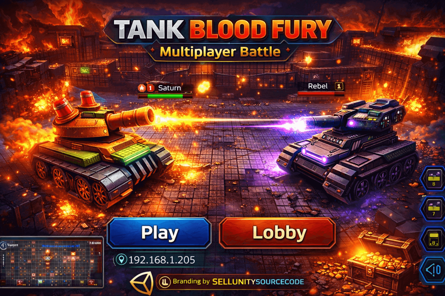 Get ready for explosive top-down tank combat in Tank Blood Fury: Multiplayer Battle, a modern multiplayer tank warfare game inspired by classic arcade titles like Tank 1990. Built with Unity, this action-packed game combines nostalgic gameplay with modern graphics, real-time multiplayer battles, and intense destruction mechanics.