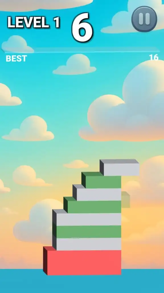 Players tap at the right moment to stack blocks higher and higher, testing timing, precision, and focus in a satisfying arcade-style experience.
