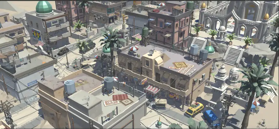 Buildings, terrains, obstacles, loot points and hiding areas designed for intense firefights.