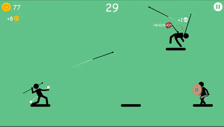 The gameplay is simple to learn but challenging to master—drag, aim, and release to throw your spear with deadly precision. Head and body shots result in instant kills, while leg hits cripple enemies after multiple strikes, adding a tactical layer to every encounter. Timing, accuracy, and positioning are key to survival.
