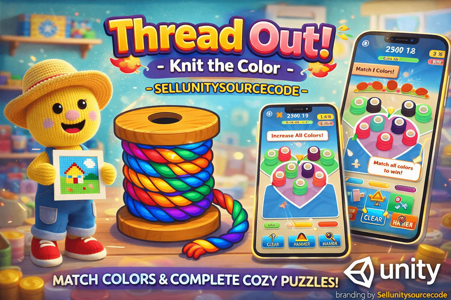 Step into a warm and charming workshop filled with colorful yarn, adorable characters, and satisfying puzzle challenges. Wool Sort Pixel Puzzle is a relaxing Unity game template that blends wool-sorting gameplay with a delightful pixel-art reveal system, creating a cozy and addictive experience for players of all ages.