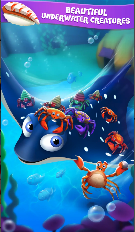 Tap to generate baby sharks and sushi rewards