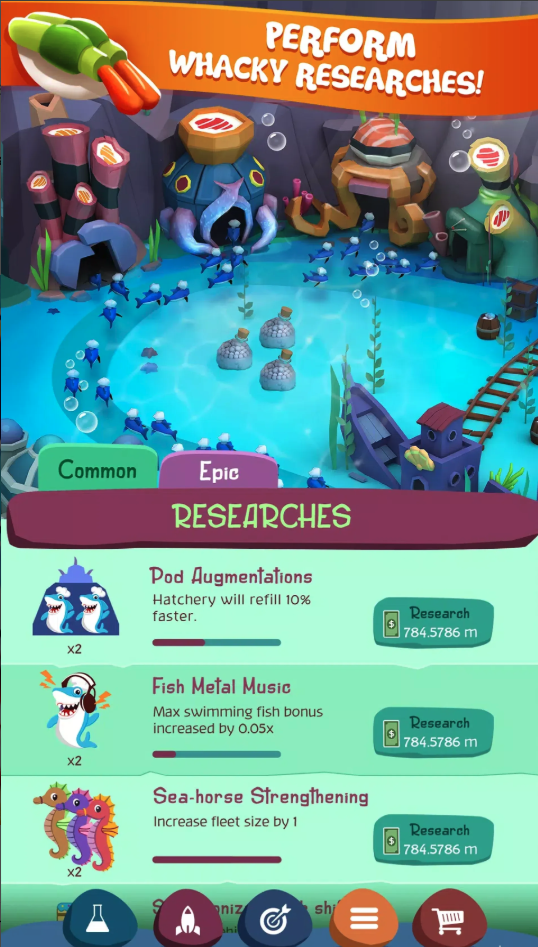 For long-term progression, Tiny Shark Idle includes a prestige system, allowing players to reset progress in exchange for powerful permanent boosts. This keeps the growth curve exciting and encourages continuous replayability.