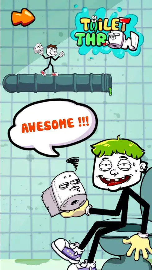 Toilet Toss is a fun and hilarious puzzle game where you toss toilet paper rolls with perfect aim to save a friend in a bathroom emergency!
