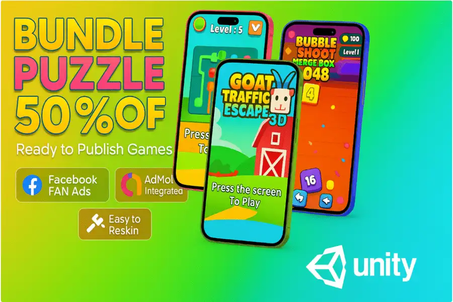 The 5-in-1 Puzzle Casual Games Bundle is a powerful Unity complete project pack that includes five fully playable hyper-casual and puzzle games, ready to publish on Google Play Store (Android) and Apple App Store (iOS).