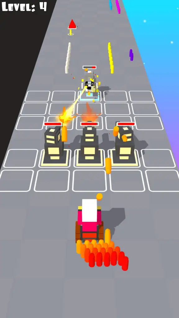Players must move left or right to collect bullets, shields, magnets, and coins. Shields prevent damage, the magnet pulls coins from a distance, and bullets are loaded into tanks at the end of the path. After loading ammunition, players unleash firepower on enemy tanks and bosses to complete the level. With 100+ levels, dozens of characters, towers, tanks, and bosses, Bullet Fever Master offers deep progression and replay value.