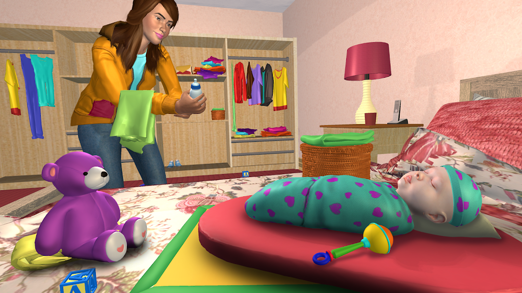 Manage daily responsibilities such as preparing breakfast, cleaning rooms, shopping for baby supplies, visiting the supermarket, and attending maternity appointments. Take care of the newborn with feeding, diaper changes, comforting routines, and bedtime care. Explore a beautifully designed 3D NY-style home while performing a variety of mom-simulator and family-simulator tasks.