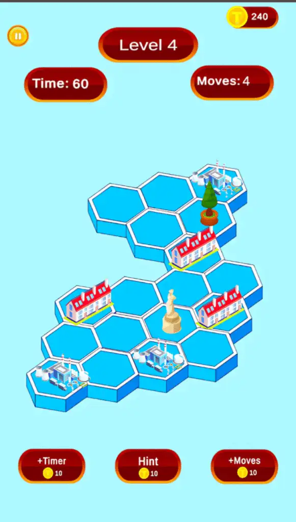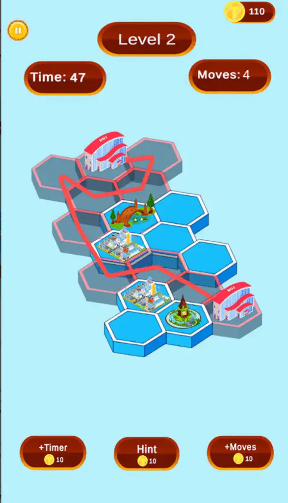 Levels grow more complex to test logic and spatial skills.