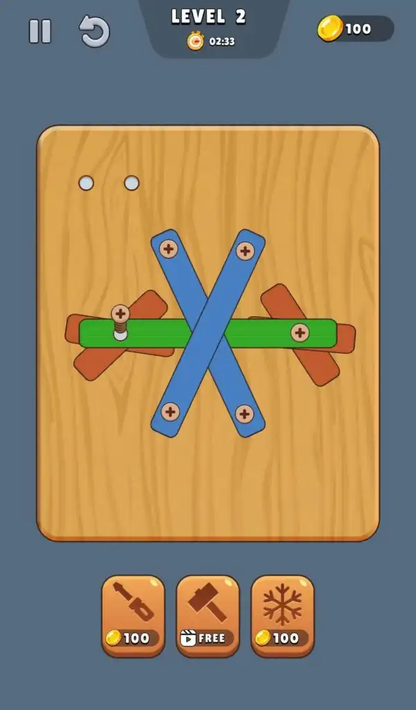 Wood Nuts & Bolts Screws invites you into a beautifully crafted wooden world where mechanical logic meets relaxing puzzle-solving fun. Your mission is simple yet deeply satisfying—unscrew wooden nuts, remove bolts, and solve clever mechanical challenges across hundreds of levels.