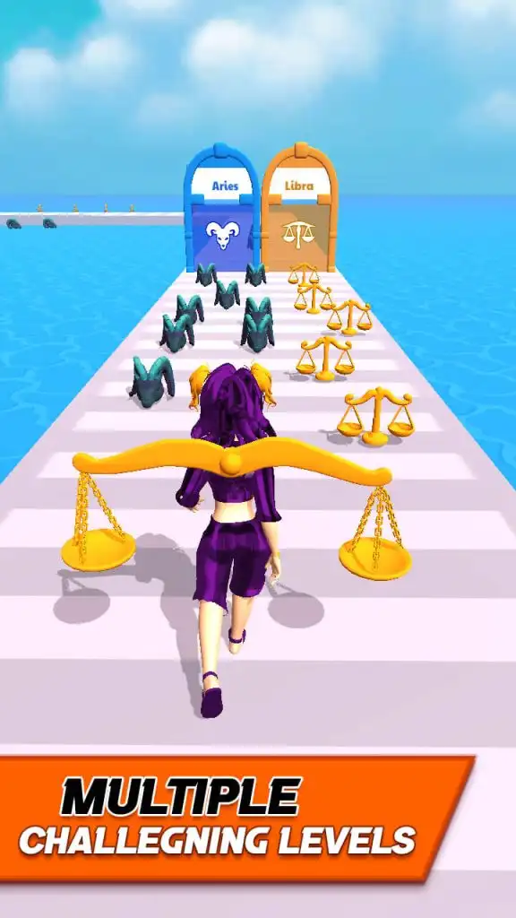 Players choose their zodiac sign and race through visually vibrant levels filled with themed obstacles, gates, symbols, and special power-ups. Every correct choice increases your sign’s strength—while wrong zodiac elements decrease your score. The goal is simple: stay aligned with your star sign, avoid conflicting energies, and reach the end with maximum cosmic harmony.