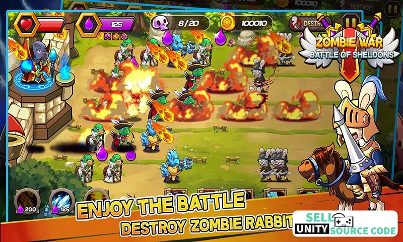 is an exciting and challenging town-defense strategy game built on Unity 2022, where players become the hero chosen to protect Sheldon Village from an unstoppable army of zombie rabbits. The game blends simple controls with deep strategic decision-making, rewarding players who think tactically and combine the right units at the right time.